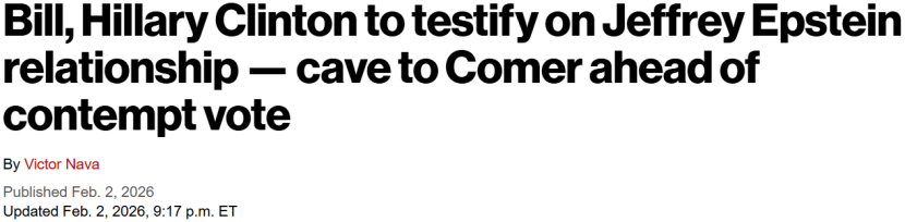 根据最新报道,美国前总统比尔·克林顿与前国务卿希拉里·克林顿称已同意接受美国国会众议院监督委员会的问询,就杰弗里·爱泼斯坦相关调查提供证词。